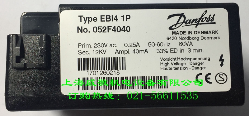 原裝DANFOSS單極點火變壓器EBI 41P052F4040 12KV 33% 燃燒器專用